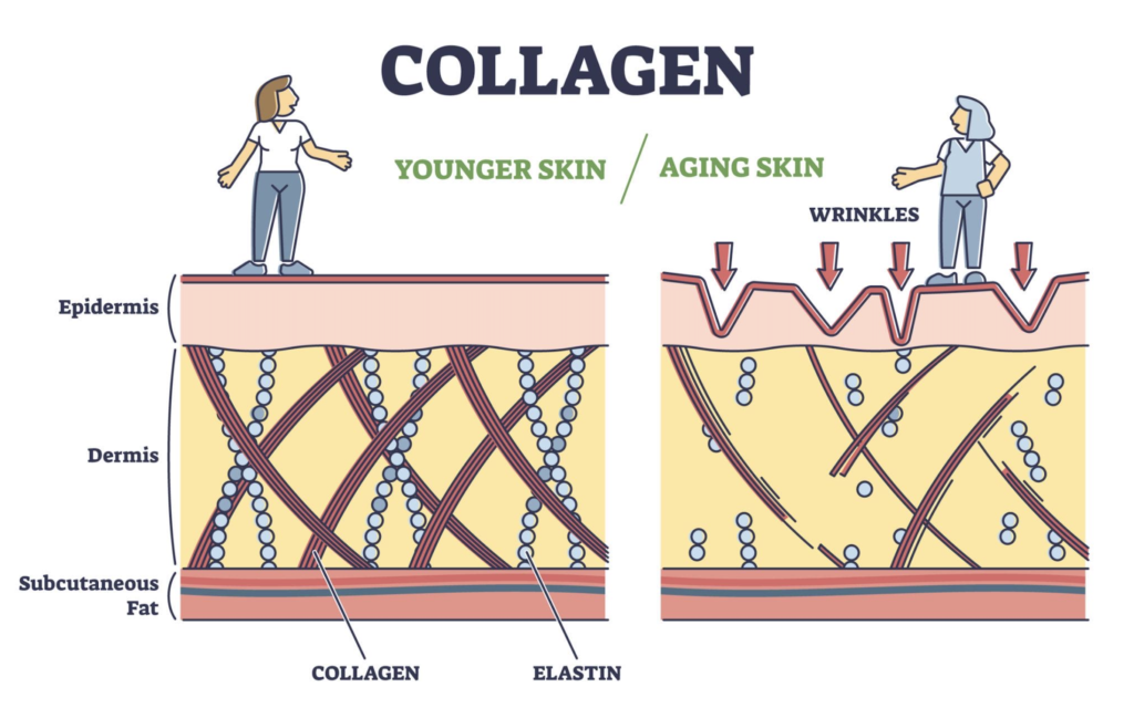 Beginning in your mid-20s, collagen production declines approximately 1% per year. Over time, this contributes to: